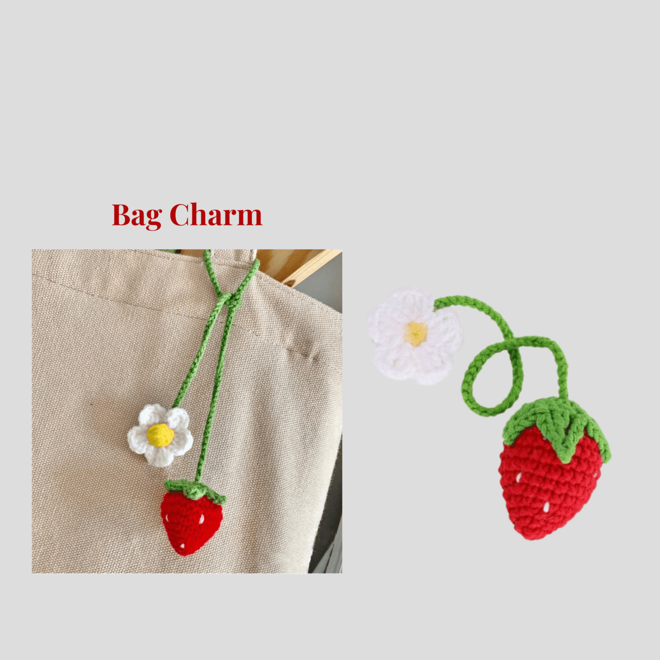 Strawberry x Flower Bag Charm Crochet